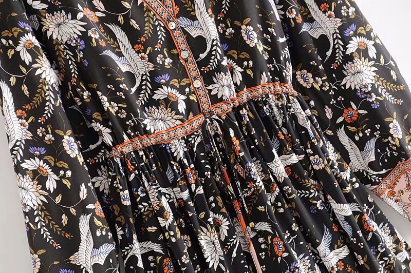Boho Queen: Crane Flower Print Dress