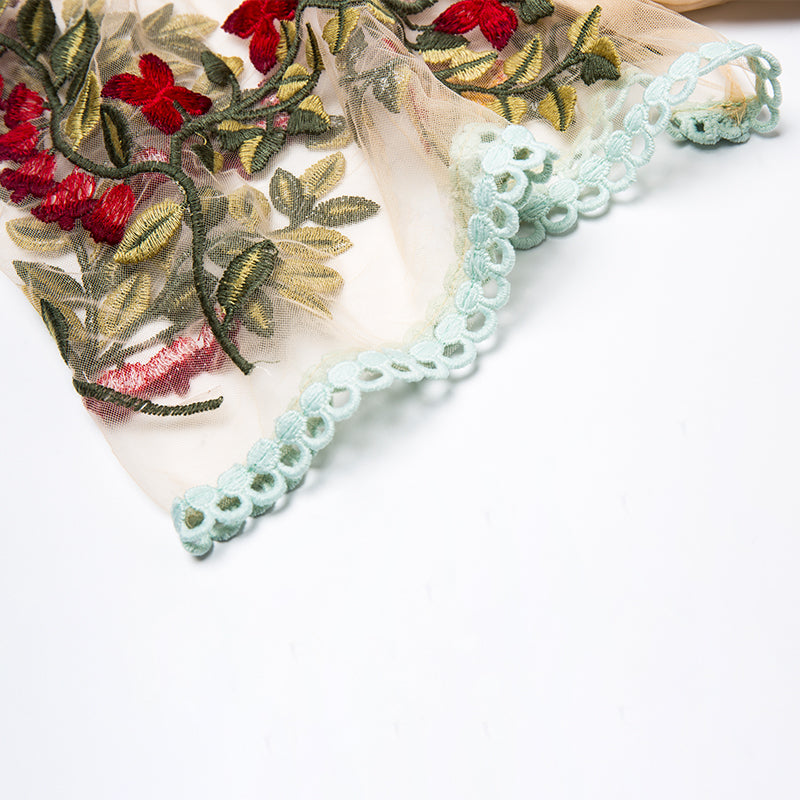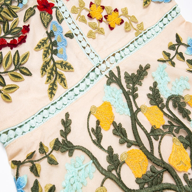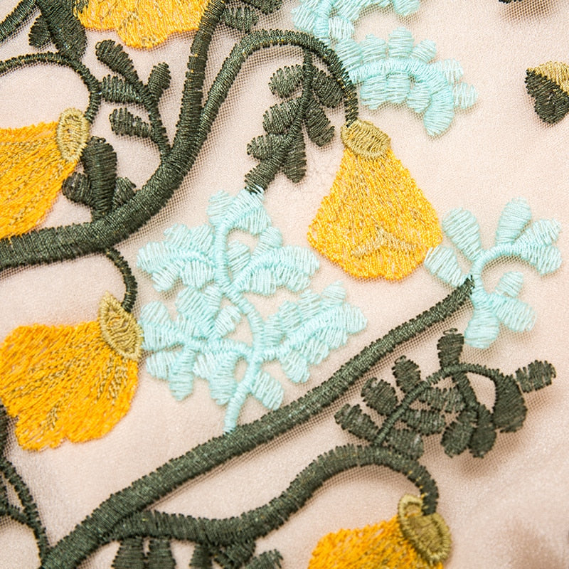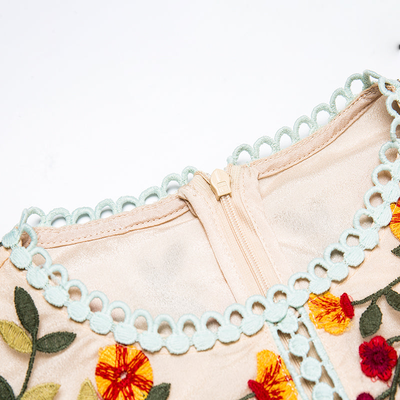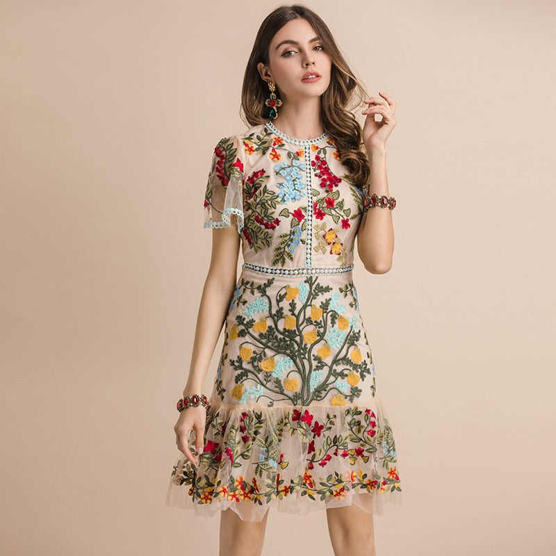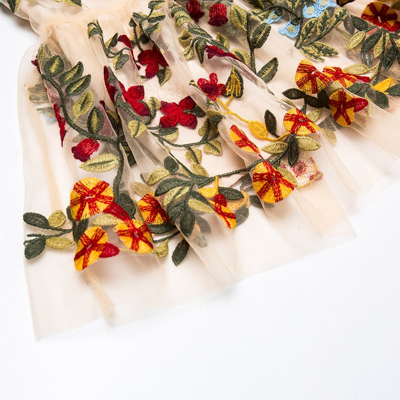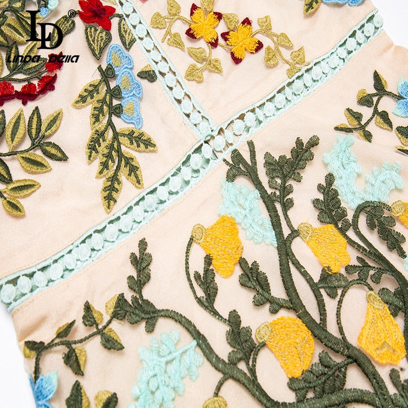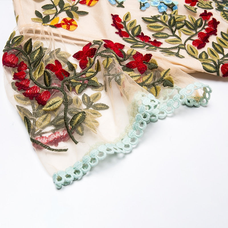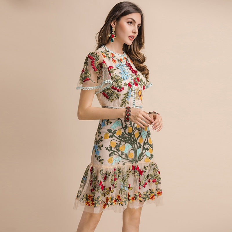 LINDA DELLA Runway Look - Flare Sleeve Floral Embroidered Elegant Mesh Hollow Out Midi Dress