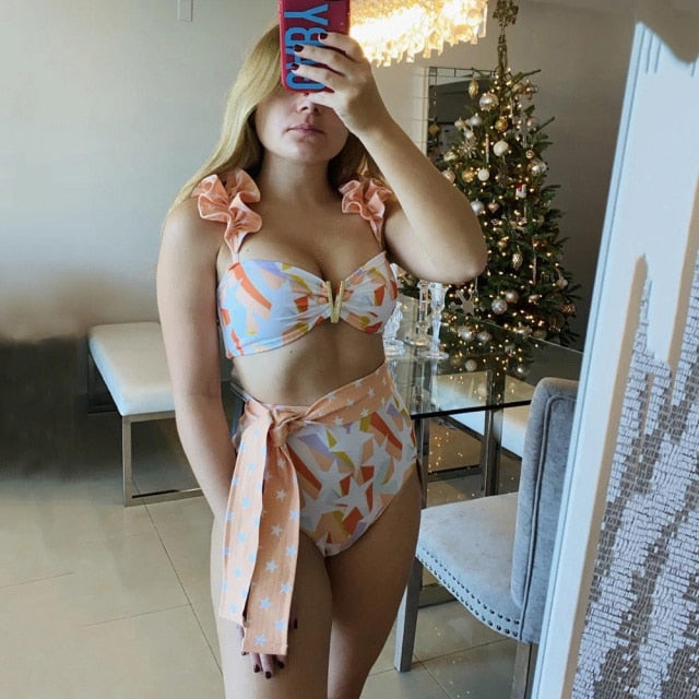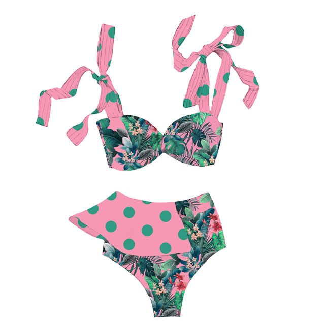 Two-Piece Ruffled Push-Up Padded Bra Bikini Bathing Suits (Multiple Designs & Colors)