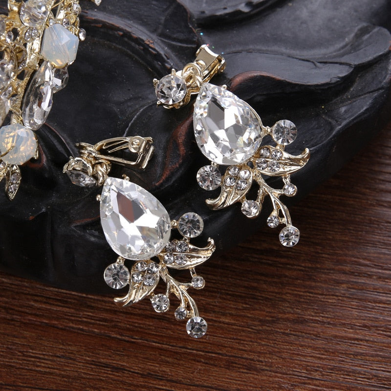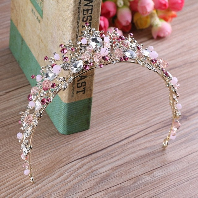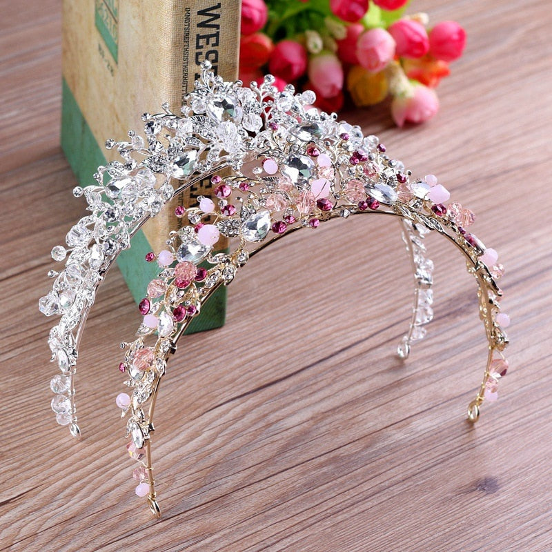 White, Gold or Pink Handmade Tiaras & Matching Earrings (Post/Clip-on)